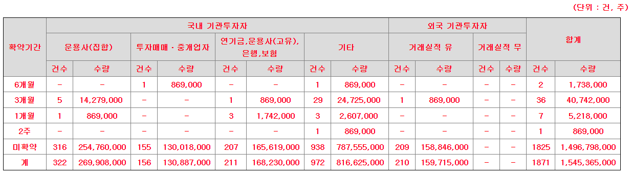 전체 공모 물량 133만 3885주의 75%인 100만414주에 대해 수요예측을 실시하였으며 총 1871개 기관이 참여해 1544.73대 1의 경쟁률을 기록한 것으로 나타나고 있습니다.