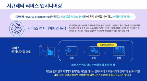 시큐레터는 2015년에 설립된 사이버보안 기업입니다. 기존 전통적인 보안 솔루션에서 진화된 지능형 사이버 보안 위협에 대응하는 기술을 독자적으로 개발한 것으로 알려져 있는데요, 핵심 기술은 크게 ▲무해화 기술과 ▲디버거 분석 2가지입니다.