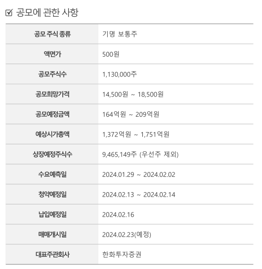 ● 공모청약일 2024.02.13 ~ 2024.02.14