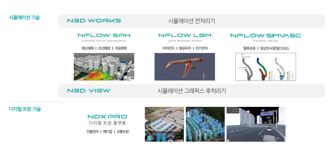 이에이트는 2012년 설립돼 2019년 국내 최초로 SPH, LBM 등 입자기반 시뮬레이션 엔플로우(NFLOW)를 상용화한 회사입니다. 2021년 순수 자체 기술 디지털트윈 플랫폼 NDX 프로를 론칭했으며 시뮬레이션 S/W와 디지털트윈 플랫폼은 외산 소프트웨어 회사가 독과점하던 시장으로 국내 토종 기업으로써 기술 경쟁력을 갖추고 시장점유율을 확대해 나가고 있는 상황입니다.